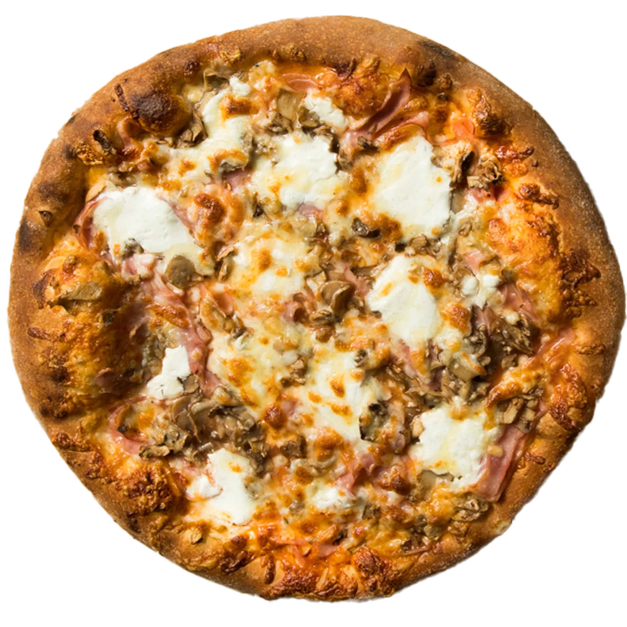 pizzaszósz, sajt, mozzarella sajt, sonka, gomba, tejföl